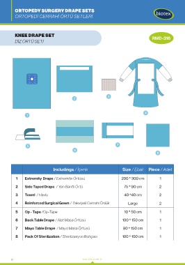 Includings / İçerik Size / Ebat Piece / Adet