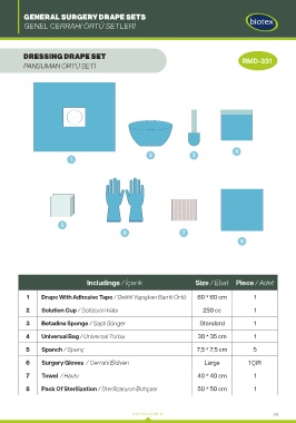 Includings / İçerik Size / Ebat Piece / Adet